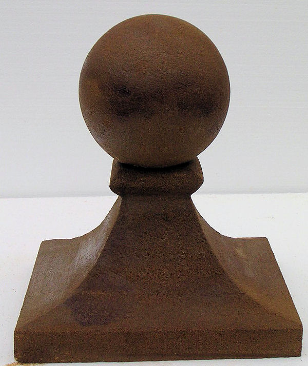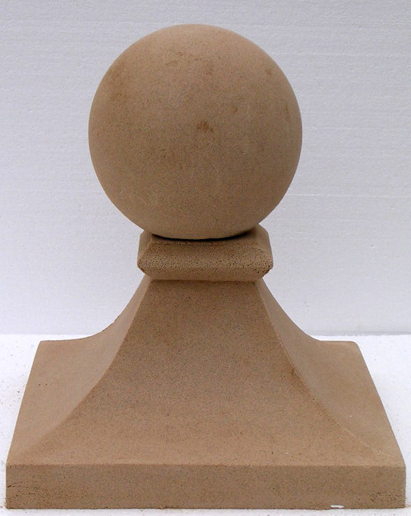 Ball finial in Bathstone with a coffee treatment to give an antiqued finish with the benefit of rapid ageing due to the organic nature of coffee.