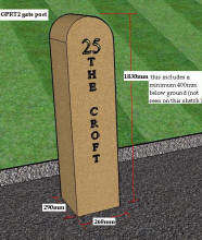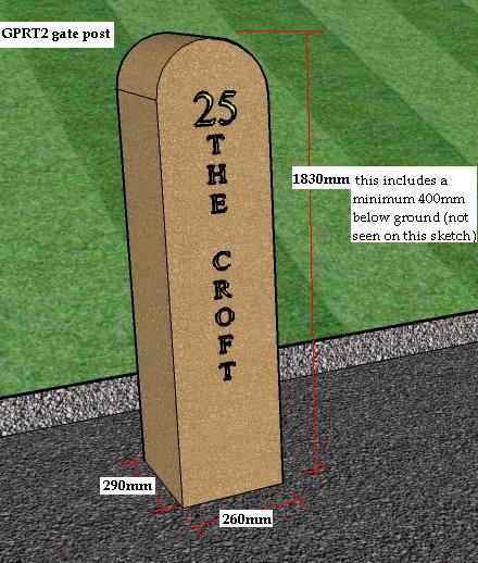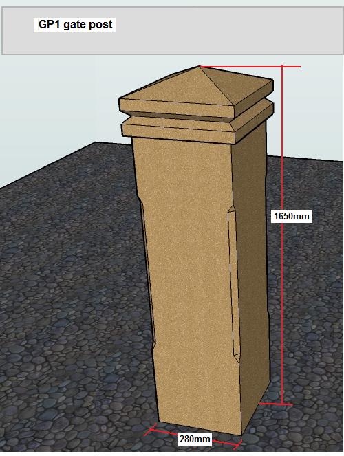 GP1 2 piecel gate post at 1650mm height, this sketch shows a pyramid cap but can be changed for any of our standard pier cap products.