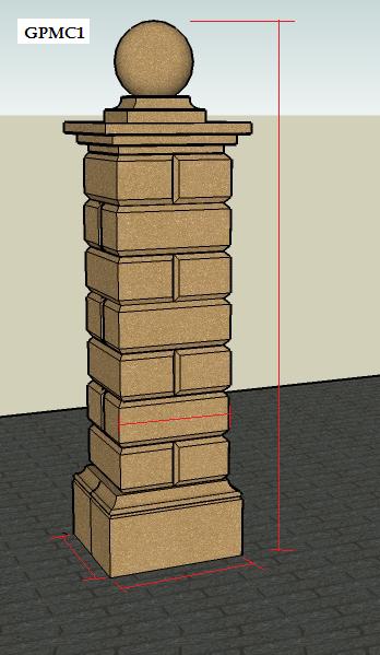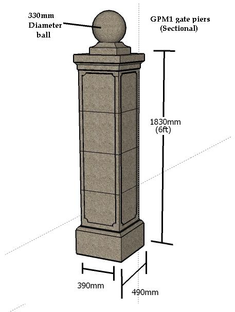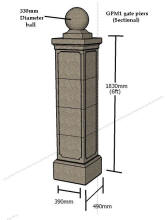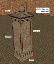 GPM1 sectional gate pier at 1830mm height, this sketch shows a Ball finial but can be changed for any of our standard pier cap products.