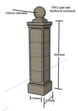 GPL1 sectional gate pier at 2640mm height, this sketch shows a Ball finial but can be changed for any of our