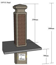 GPS1 sectional gate pier at 1500mm height, this sketch shows a pyramid cap but can be changed for any of our standard pier cap products.