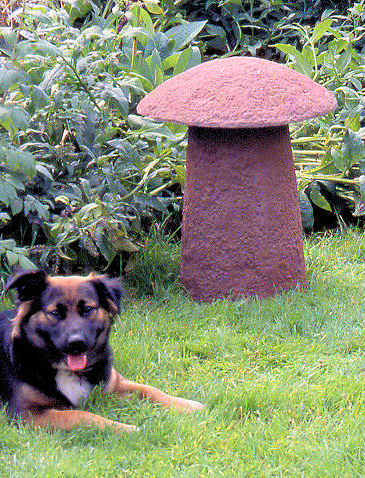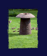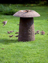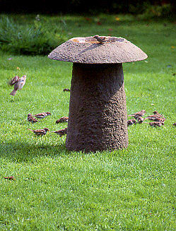 The traditional staddle stone, shown here in a Red sandstone finishe, originally used to support timber floors and buildings for the storage of grains, thereby protecting the crop from rodents, now used as ornamentation lining drives and paths