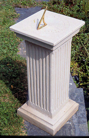 A Georgian style sundial and bird bath with fluted shaft, shown here in our Portland stone finish the numerals are engraved into the surface of the Sundial top with the brass gnomon fitted.