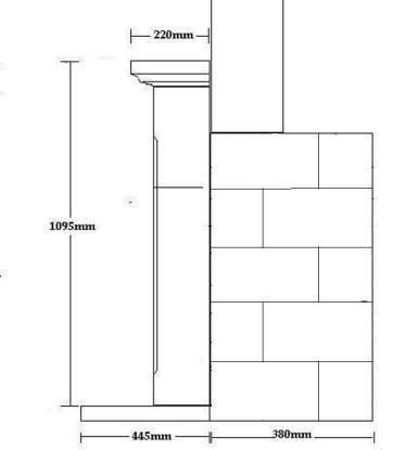 Height not including hearth is 1095mm (+ 50mm for hearth)