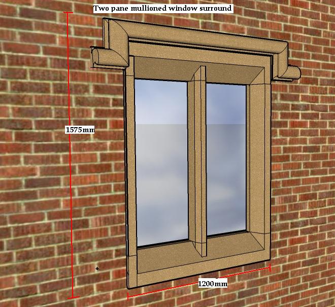 Our standard range of mullioned window surrounds are available in seven stone finishes or colour matched to existing masonry, the height can be adjusted by the length of the mullions if required with the hood moulding as shown in this diagram, optional.