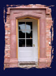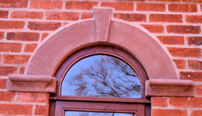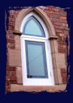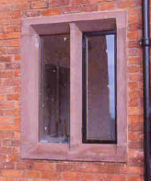 Two paned mullion window (without hood moulding) in a red sandstone finish